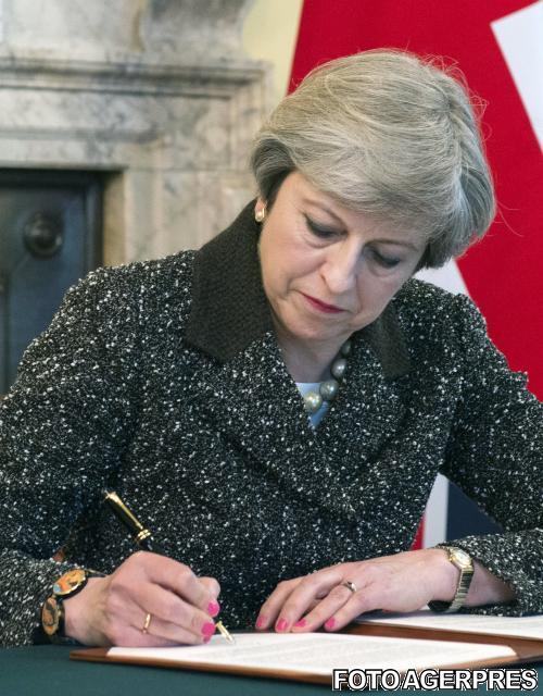 Şefa guvernului de la Londra, Theresa May, a semnat scrisoarea oficială care va fi prezentată miercuri la Bruxelles pentru a marca declanşarea de către Regatul Unit a procesului de ieşire din Uniunea Europeană, potrivit unei fotografii difuzate marţi, la ora 21,00 GMT, de biroul acesteia, transmite AFP.
