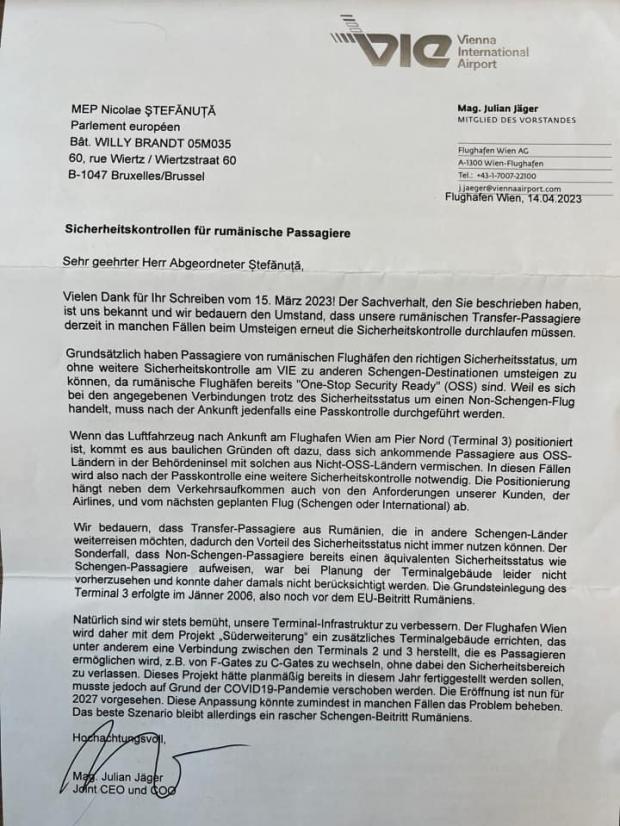Această ajustare ar putea, cel puțin în unele cazuri, să rezolve problema. Cel mai bun scenariu rămâne, însă, aderarea rapidă a României la Schengen", arată răspunsul oferit de Aeroportul din Viena.