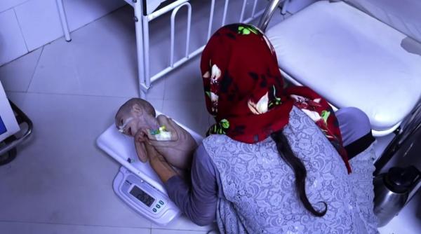 Usman, unul dintre micuții filmați de echipa BBC, cântărește jumătate din greutatea normală la vârsta sa. Tatăl său se numără printre milioanele de afgani care nu au de lucru.