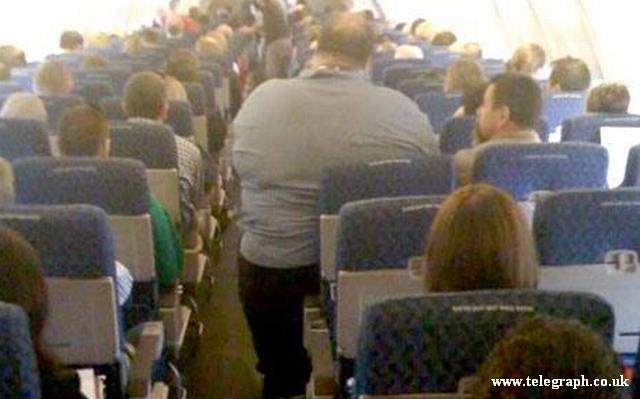 La sfârşitul anului trecut, o fotografie a stârnit comentarii în presa din lumea întreagă. Este vorba despre un pasager obez care nu încăpea pe un singur scaun. Omul încerca să-şi ţină echilibrul în avion în condiţiile în care scaunul nu reuşea să-i susţină decât jumătate din corp.