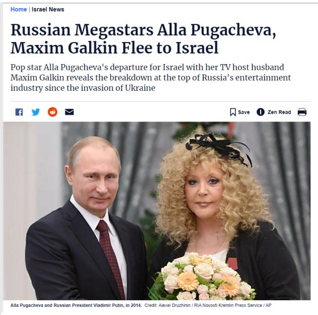 Pugaciova şi Galkin nu dau interviuri şi fac foarte rar declaraţii politice. Singurul comentariu lipsit de ambiguitate al lui Galkin a fost făcut în prima zi a invaziei ruse în Ucraina, notează Haaretz.