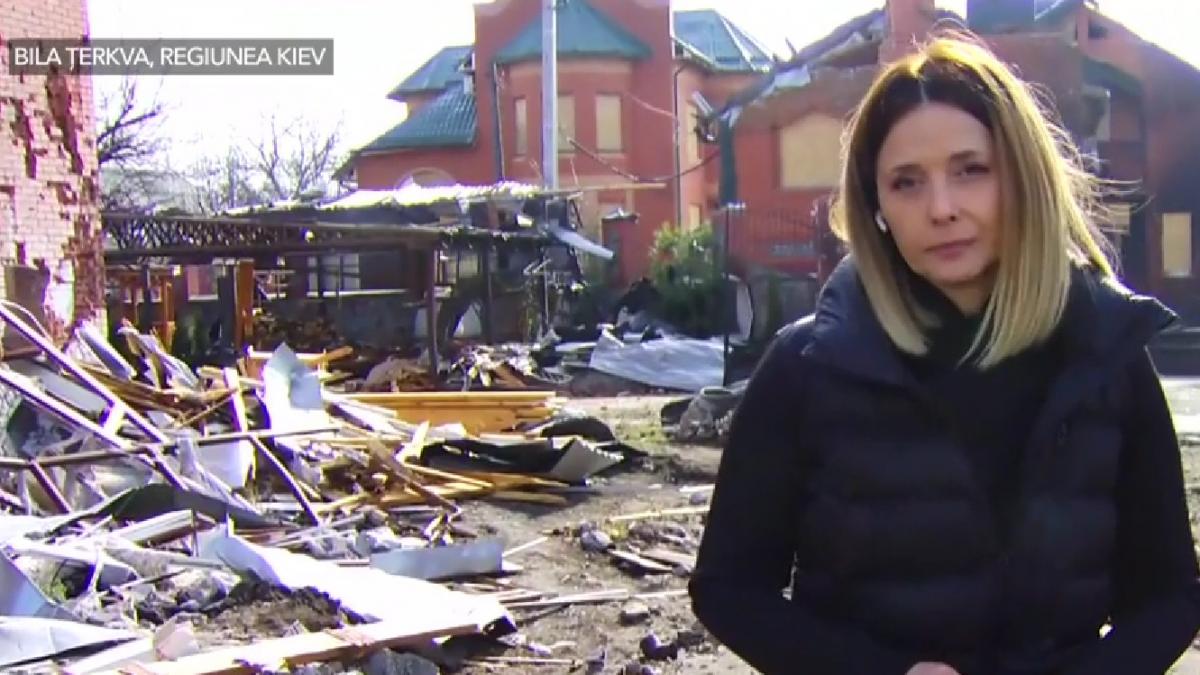 Ana Roman este în apropiere de Kiev şi prezintă cum arată localitatea Bila Ţerkva după bombardamentele ruşilor, care au distrus 20 de case situate într-o zonă rezidenţială.
