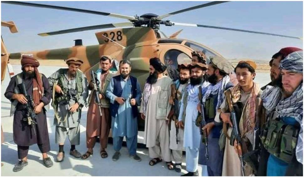 Poze și filmări publicate de talibani pe Twitter îi arată pe aceștia purtând carabine M4 și puști M16, lăsate în urmă de armata afgană, iar odată ce talibanii au preluat controlul aerodromului din Kandahar, nu a durat mult până când au apărut fotografii pe rețelele de socializare în care luptătorii talibani pot fi observaţi pozându-se cu elicoptere militare, precum Black Hawks fabricate în SUA și elicoptere Mi-17 fabricate de sovietici.