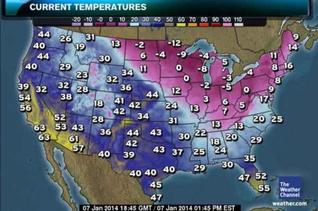Cea mai scăzută temperatură înregistrată până în prezent a fost de minus 53 de grade Celsius, în Montana, în nordul-vestul ţării, iar o temperatură puţin mai ridicată a fost înregistrată în North Dakota, South Dakota şi Minnesota.