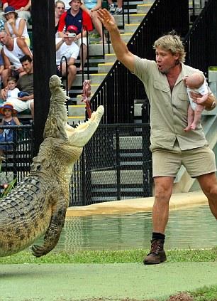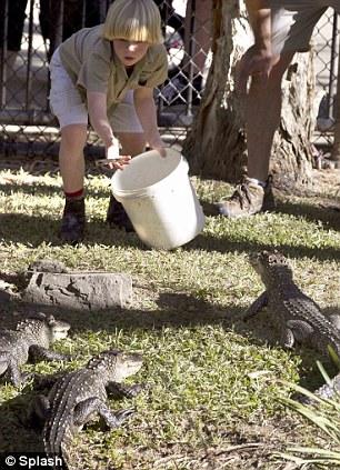 Băiatul a fost surprins hrănind aligatorii americani în faţa unei mulţimi de 200 de oameni, la Parcul pe care familia Irwin îl deţine în Queensland.