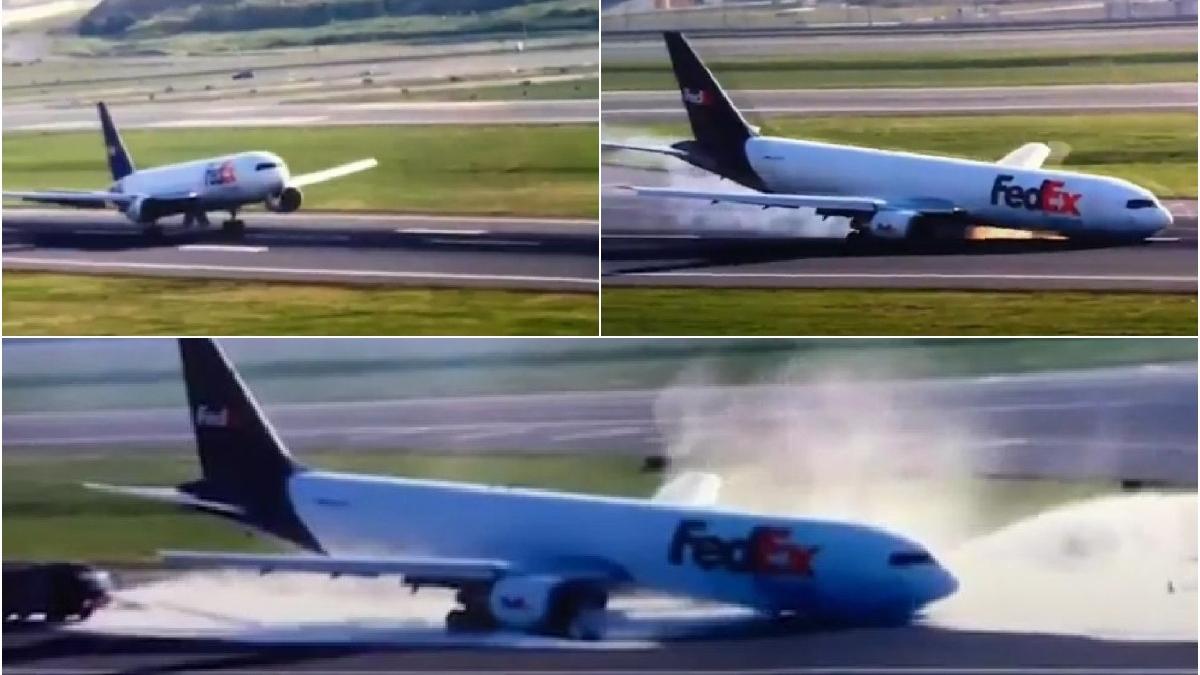 Este vorba despre o aeronavă cargo Boeing 763, care a semnalat anterior o problemă la trenul de aterizare.