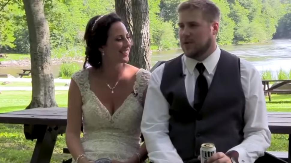 Acolo, tinerii proaspăt căsătoriți s-au așezat pe o banca și vorbeau cu fotograful despre urmează să facă, și-au dat seama că ceva e în neregulă.