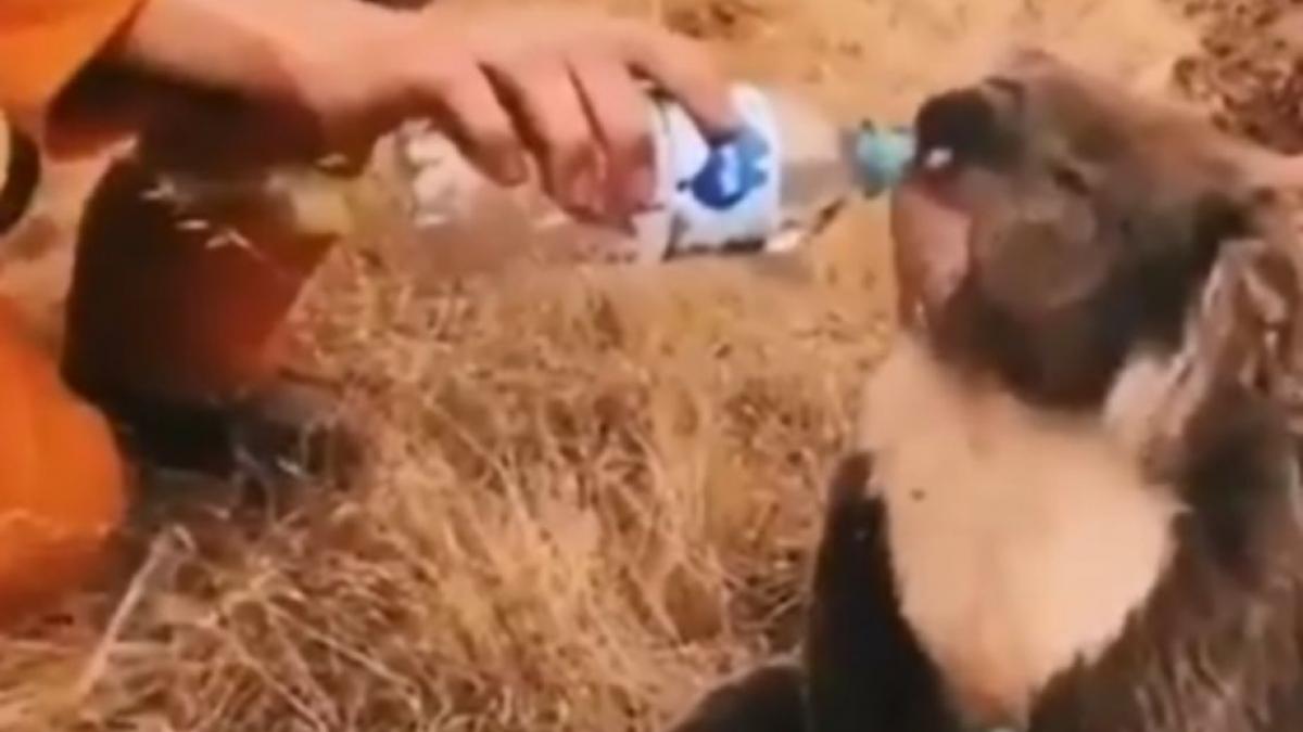 Un ursuleţ koala sufocat de fum a băut apă din sticla ţinută de un pompier, iar imaginile surprinse au devenit virale.