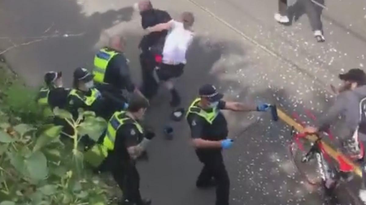 Autoritățile din statul australian Victoria au precizat că cinci membri ai forțelor de ordine au fost internați în spital după ce au fost trântiți la pământ şi călcați în picioare de mulțime.