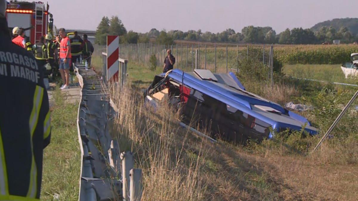 Postul de televiziune a prezentat o înregistrare video cu un autobuz albastru distrus într-un șanț de lângă autostradă. Autobuzul se deplasa spre Zagreb, capitala Croației.