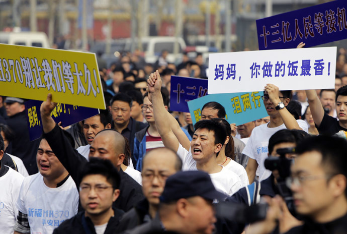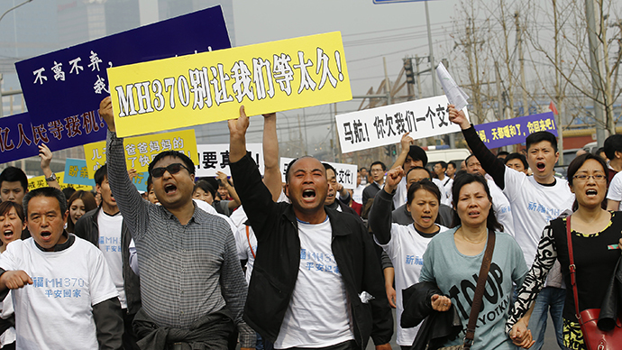 Printre pasagerii avionului dispărut se aflaău 153 de cetăţeni chinezi. Membrii familiilor celor dispăruţi au depus mai multe plângeri adresate autorităţilor malaeziene şi companiei aeriene Malaysian Airlines. Ei îi acuză pe cei vizaţi că au gestionat greşit situaţia şi că ascund în mod deliberat adevărul.