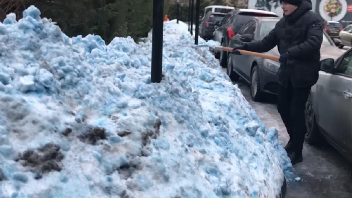 Într-un cartier din nordul oraşului, zăpada este albastră.