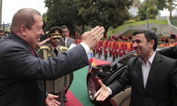 “Una dintre ţintele americanilor este Iranul, de aceea facem tot posibilul să le arătăm iranienilor că le suntem solidari”, a spus Chavez în cadrul unei conferinţe de presă. „Dealul de lângă palatul prezidenţial se va deschide şi va apărea o mare bombă atomică”, a spus, pe un ton ironic, liderul Venezuelei.