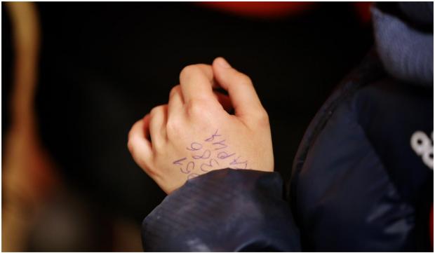 Hassan, în vârstă de 11 ani, avea în mână doar un rucsac mic, documente și un număr.