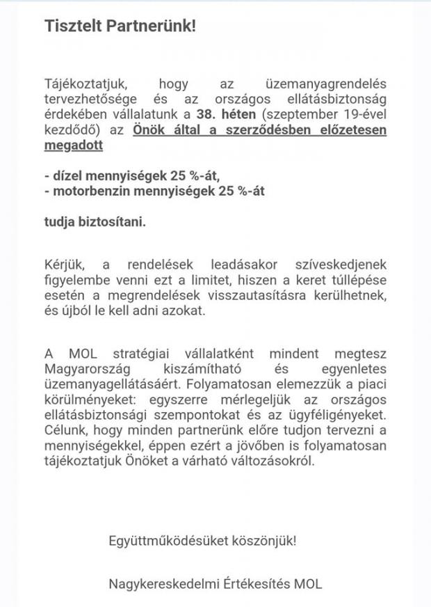 MOL a motivat decizia "pentru a planifica comanda de combustibil și a asigura securitatea națională a aprovizionării".