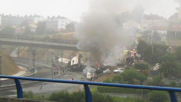 La 20,40, ora locală, un tren de viteză a deraiat într-o curbă dificilă la trei kilometri de oraşul spaniol Santiago de Compostela. Trenul circula cu o viteză de 180 de kilometri pe oră, într-o zonă în care viteza legală era de doar 80 de kilometri pe oră, potrivit presei locale. Cele 13 vagoane s-au răsturnat, iar câteva s-au rupt în două din cauza impactului nimicitor. Aproape 250 de pasageri se aflau în tren.