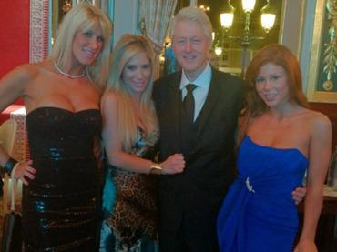 Clinton, prezent la o petrecere în Monaco, s-a lăsat fotografiat la braţ cu două staruri porno. Din nefericire pentru fostul preşedinte, fotografia a ajuns virală pe internet după ce una dintre tinere, Brooklyn Lee (22 de ani) - care tocmai a fost premiată pentru "Cea mai bună scenă de sex oral" - a postat-o pe contul ei de Twitter.