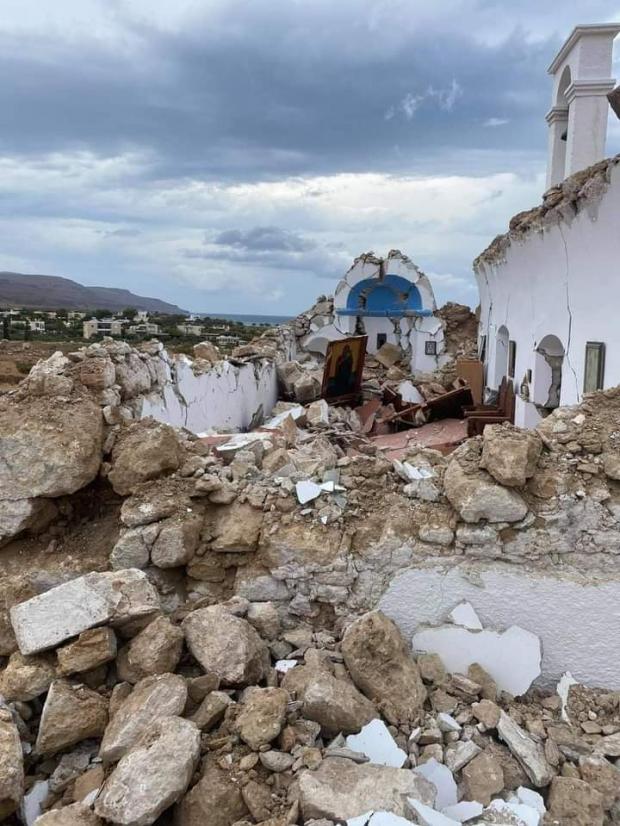 Cutremurul cu magnitudinea de 6,3 a dus la prăbușirea bisericii Agios Nikolaos din Xirokampos Ziros. Din imaginile publicate în presă, se poate observa icoana înconjurată de ruinele lăcașului de cult.