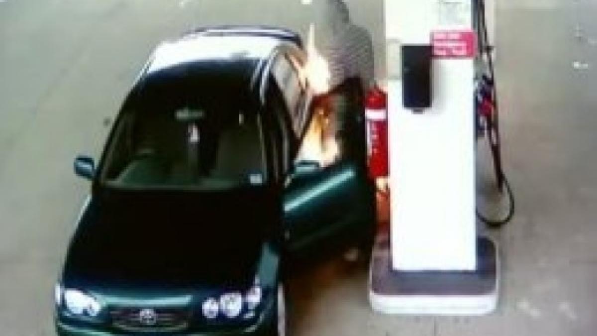 Aceasta a fost cea mai neinspirată mişcare pe care a putut să o facă, pentru că vaporii de benzină s-au aprins imediat şi totul în jurul lui a fost cuprins de flăcări.