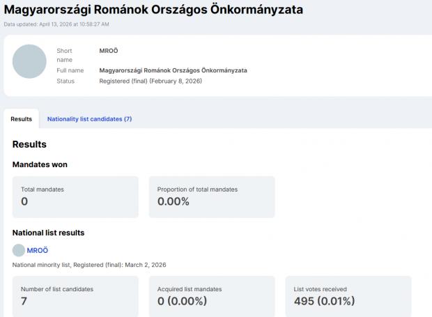 Partidul minorității românești din Ungaria, Uniunea Românilor din Ungaria, a obținut doar 495 de voturi la alegerile parlamentare de duminică, reprezentând 0,01%.