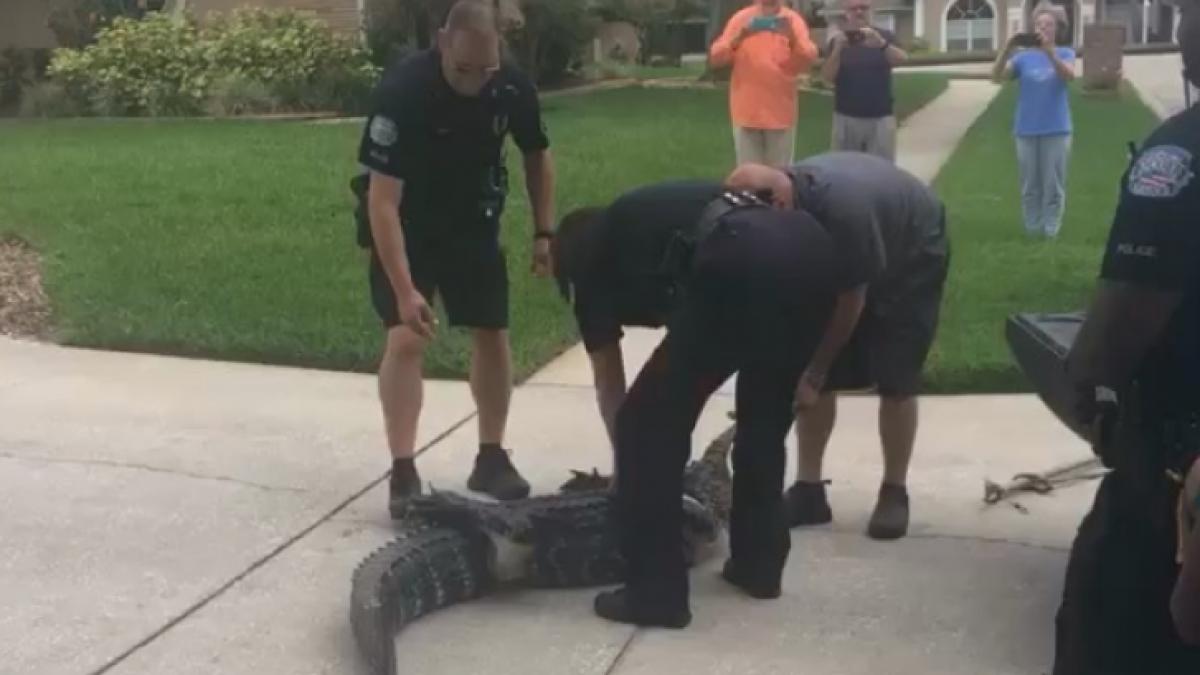 Reptila avea botul legat, iar trei poliţişti au încercat să îl urce într-o maşină pentru a-l muta în apropiere. Acesta a fost momentul în care aligatorul l-a atacat cu botul pe unul din poliţişti, bărbatul fiind pur şi simplu doborât de forţa loviturii.