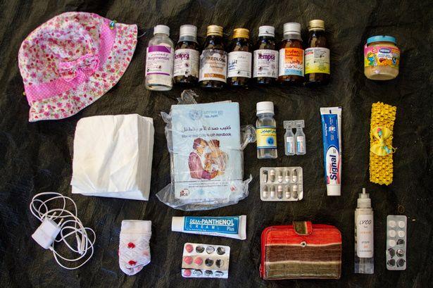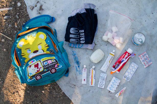 O mamă interogată de voluntarii organizaţiei a arătat conţinutul bagajului ei: o pălărie de soare pentru fetita ei, câteva medicamente, câteva scutece, documente personale, bani şi fotografii, precum şi un încarcător pentru telefon.