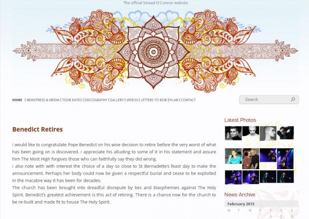 Sinead O'Connor a postat o declaraţie publică pe site-ul ei, în care afirmă că demisia Papei Benedict al XVI-lea ar trebui să marcheze începutul unei noi ere, cea a onestităţii, pentru Biserica Catolică.