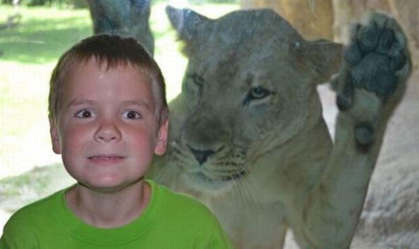 Un băiat din Miami a plecat de la grădina zoologică cu o amintire pe care, cu siguranţă, nu o va uita niciodată.În vârstă de şapte ani, Alex s-a şezat în faţa cuştii leului pentru o fotografie când animalul a hotărât că vrea şi el să apară în... peisaj.