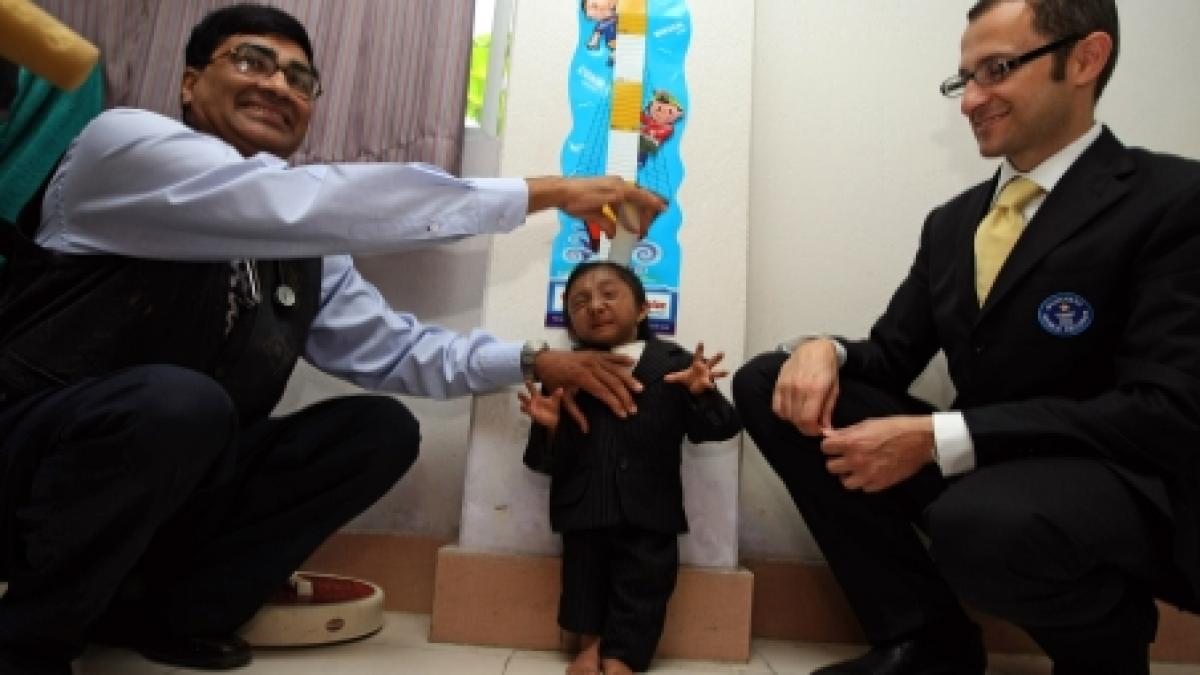Khagendra Thapa Magar măsoară doar 65.5 centimetri în înălţime şi cântăreşte 5,5 kilograme. El a preluat ?ştafeta? de la Edward "Nino" Hernandez (24 de ani) din Columbia, precedentul deţinător al recordului, care este mai înalt cu doar 5 centimetri.