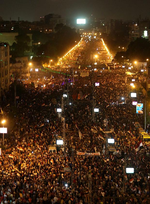 Milioane de egipteni au ieşit în stradă în oraşele egiptene, cerând demisia preşedintelui Mohamed Mursi. Piaţa Tahrir din Cairo a devenit neîncăpătoare, iar rutele de acces spre centru au fost blocate de manifestanţi.
