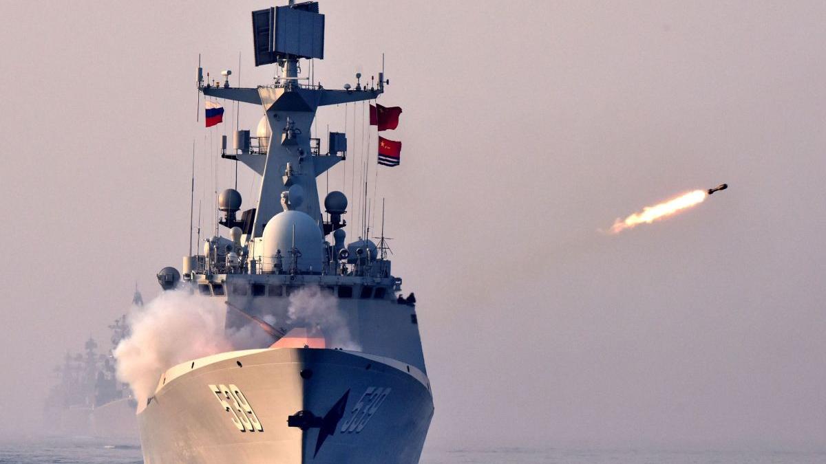 Foto principală: fregată chineză lansând o rachetă în timpul unui exercițiu naval comun cu Rusia
