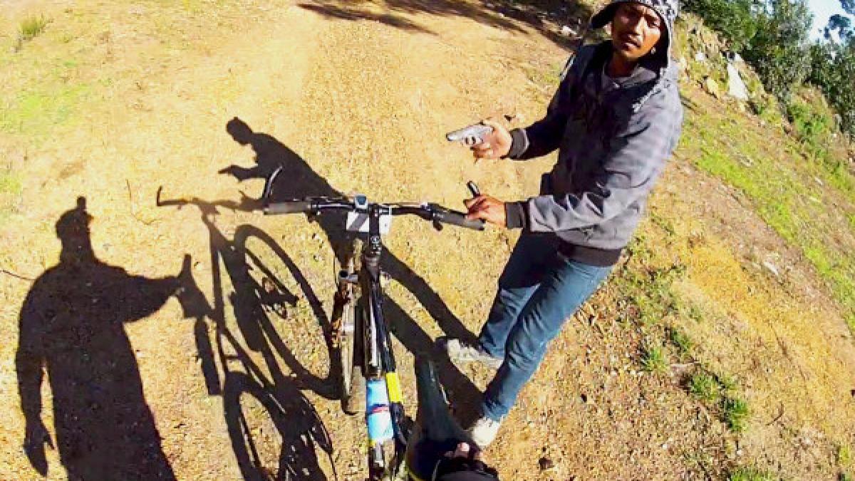 Malcom Fox a fost oprit pe traseu de un bărbat înarmat care i-a cerut bicicleta și telefonul, dar i-a lăsat camera GoPro pe care Malcolm o avea montată pe cască, cel mai probabil pentru că nu a știut ce este.