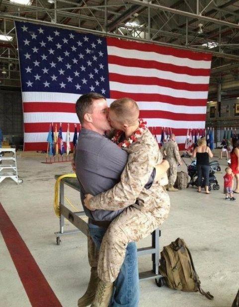 "Eu şi iubitul meu le mulţumim celor care au răspuns pozitiv. Nu am făcut acest gest ca să devenim faimoşi, l-am făcut pentru că, după trei misiuni şi patru ani de când ne cunoaştem, ne-am spus în sfârşit ce simţim unul faţă de celălalt. Cât despre cei care ne urăsc, să ne urască. Suntem mai fericiţi ca niciodată", a spus Brandon Morgan, soldatul din imagine, pentru Huffington Post.