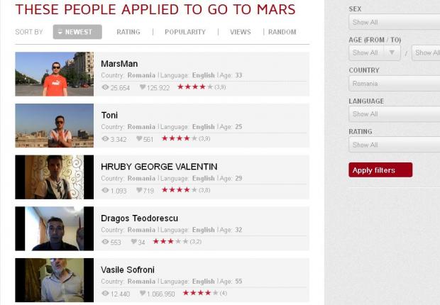 Fiecare candidat a postat câte un video de introducere şi câteva paragrafe introductive, pe site-ul mars-one.com.