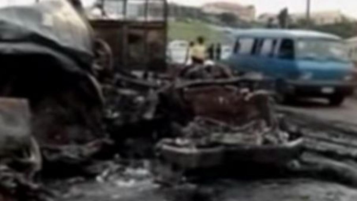 Un camion ale cărui frâne au cedat a lovit mai multe maşini şi a luat foc, iar flăcările au cuprins imediat alte câteva vehicule ai căror ocupanţi au ars de vii.