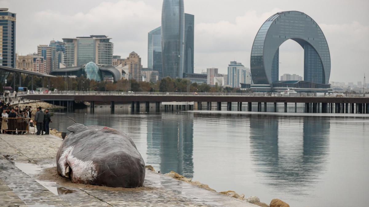 Autoritățile azere le-au permis activiștilor de mediu să instaleze "balena moartă" la Baku