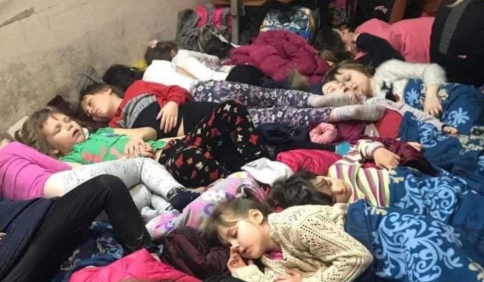 În timp ce afară se duc lupte grele, într-unul dintre buncărele din Ucraina, parcă timpul s-a oprit în loc. Mici, speriați și înfrigurați, câțiva copii dorm ghemuiți unul lângă celălalt, în timp ce mamele lor îi privesc cu dragoste și tristețe în suflet.