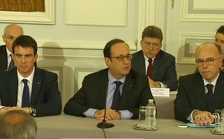 UPDATE: Televiziunile franceze au difuzat imagini în care se putea vedea cum preşedintele Francois Hollande se deplasa la sediul Ministerului de Interne pentru a vedea cum se desfăşoară operaţiunea de prindere a teroriştilor.