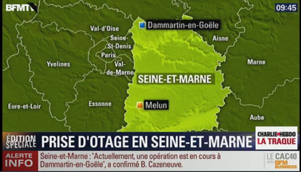 Câteva minute mai târziu, un schimb de focuri a avut loc în Seine-et-Marne, în dreptul localităţii Dammartin-en-Goële, în apropiere de zona unde au loc operaţiunile de căutare a fraţilor Cherif şi Said Kouachi. Mai mulţi bărbaţi aflaţi la bordul unei maşini au tras în forţele de ordine.