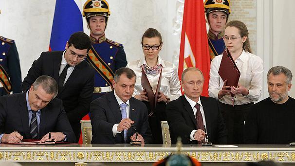 La 18 martie, preşedintele Rusiei, Vladimir Putin, semnează un decret prin care Crimeea devine parte integrantă din Federaţia Rusă.
