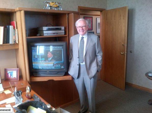 O fotografie realizată miercuri de Arianna Huffington ( co-fondatoarea site-ului de ştiri Huffington Post) şi postată pe profilul ei de Facebook prezintă unul dintre birourile lui Warren Buffett. Este vorba despre o încăpere de dimensiuni reduse, cu mobilier obişnuit şi cu un televizor vechi, fără ecran plat.