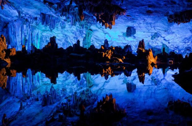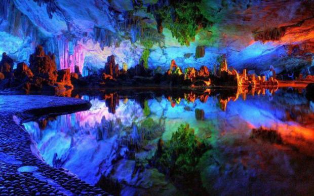 Lung de 240 de metri, cu fomaţiuni calcaroase colorate cu lumină artificială, "Palatul artelor naturale" este o adevărată splendoare, arată MyModernMet.com.