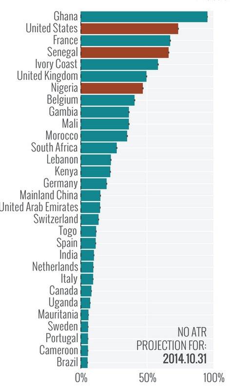 Cercetătorii de la Laboratory for the Modeling of Biological and Socio-Technical Systems din cadrul Universităţii Northeastern din Boston au calculat rsicul apariţiei unor cazuri de Ebola în mai multe state ale lumii, până la sfârşitul acestei luni.