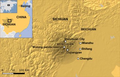 În urma cutremurului două şcoli din Chengdu s-au prăbuşit, prinzând captivi peste 900 de elevi şi profesorii lor. Strigătele lor de ajutor se auzeau luni seară, în timp ce echipele de salvare încearcau să-i elibereze. Cel puţin alte şapte şcoli şi un spital s-au dărâmat, iar în oraşul Beichuan, aproape de epicentrul cutremurului, peste 80% din clădiri s-au prăbuşit.