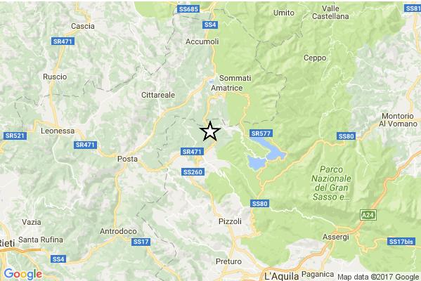 Mişcarea seismică s-a resimţit în regiunile Lazio, Abruzzo şi Marche, deja lovite de o serie de seime în august şi octombrie, precum şi la Roma. Epicentrul pare să se afle în aceeaşi zonă în care s-a produs cutremurul devastator din 24 august care a provocat 298 de decese şi cele din 30 octombrie care s-au soldat doar cu pagube materiale, potrivit Agerpres.