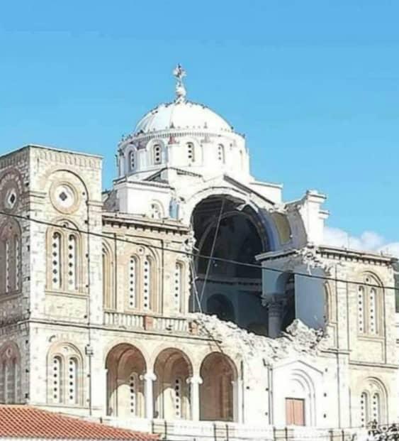 Printre monumentele prăbuşite se află şi biserica Panagia Theotokou din Karlovasi.