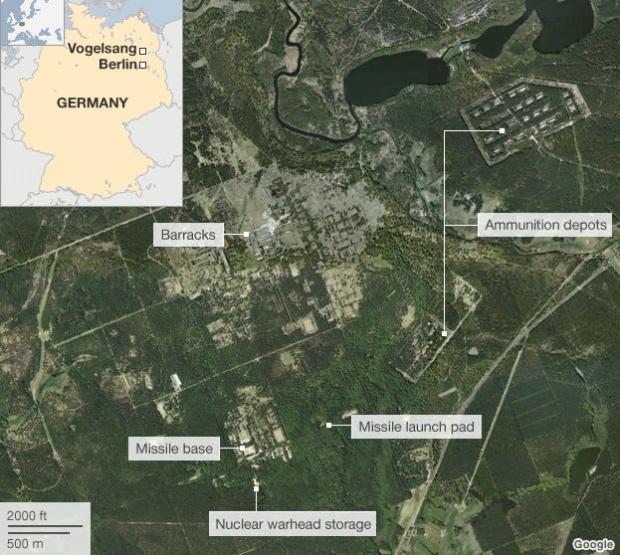 Nu este un loc uşor de găsit, explică jurnaliştii BBC News. Pierdută în pădurile Brandenburg, sub frunzele căzute ale copacilor, poate fi observată o porţiune de ciment de mărirea unui teren de tenis, cu o placă de metal în mijloc. Acesta era locul de lansare a rachetelor nucleare, rachete nucleare ce urmau să atingă ţinte din Europa de vest, precum Londra sau baze nucleare din estul Angliei.