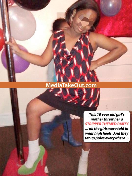 Nu asta s-a întâmplat şi cu o copilă de 10 ani, care a primit cadou de ziua ei o petrecere mai puţin normală. Tema sărbătorii a fost una la care numai adulţii visează. Astfel, toţi copiii au fost îmbrăcaţi în prostituate sau peşti, iar fetiţele şi-au putut etala talentul la bară.