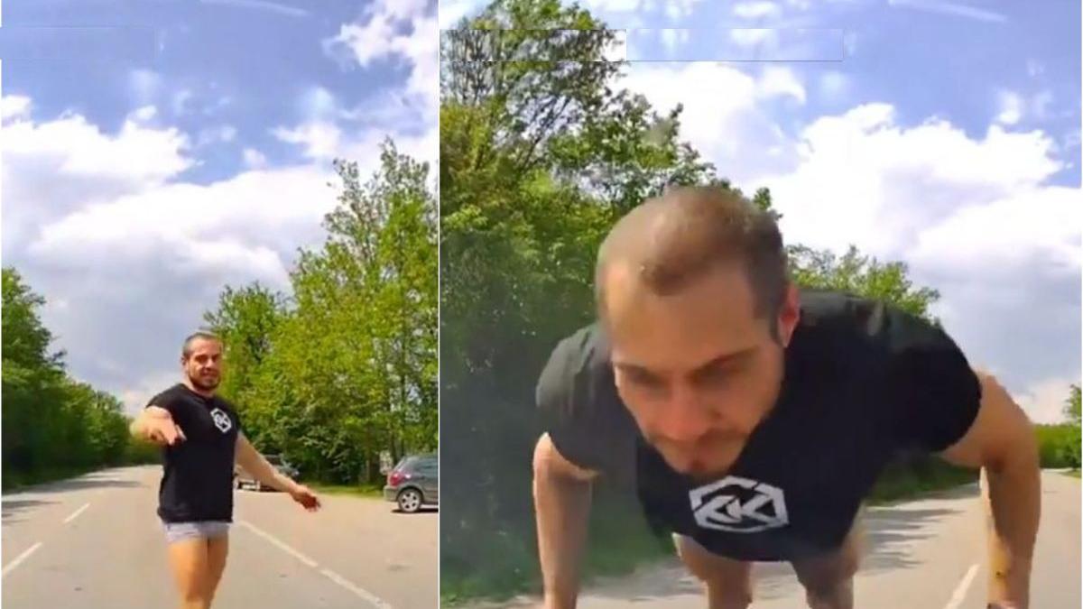 În momentul în care şoferul a dorit să-şi continue drumul, bărbatul s-a urcat din nou pe capotă, de data aceasta pe burtă.