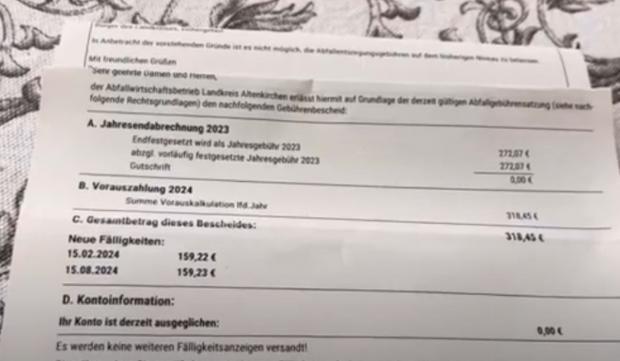 În acest context, potrivit facturii, în 2024 colectarea gunoiului costă 318,45 euro.